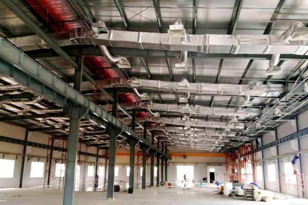 Hệ thống thông gió và điều hòa không khí: Hệ thống thông gió và điều hòa không khí phải đảm bảo cung cấp không khí sạch, thoáng mát và duy trì nhiệt độ, độ ẩm phù hợp trong nhà xưởng. Các thiết bị như quạt, máy lạnh, ống dẫn khí cần được lắp đặt và bảo trì đúng cách.
